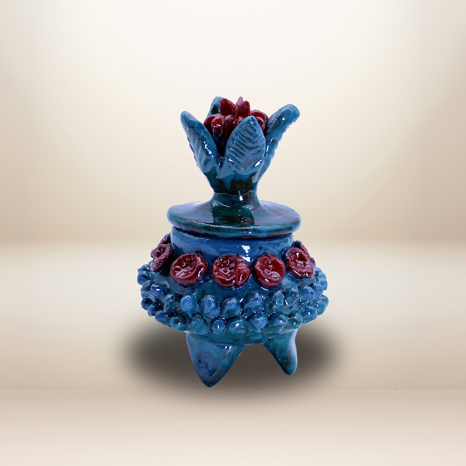 Elegante pieza de barro vidriado, elaborada a mano por artesanos mexicanos. Su acabado brillante y diseño único la convierten en un detalle especial para cualquier espacio.