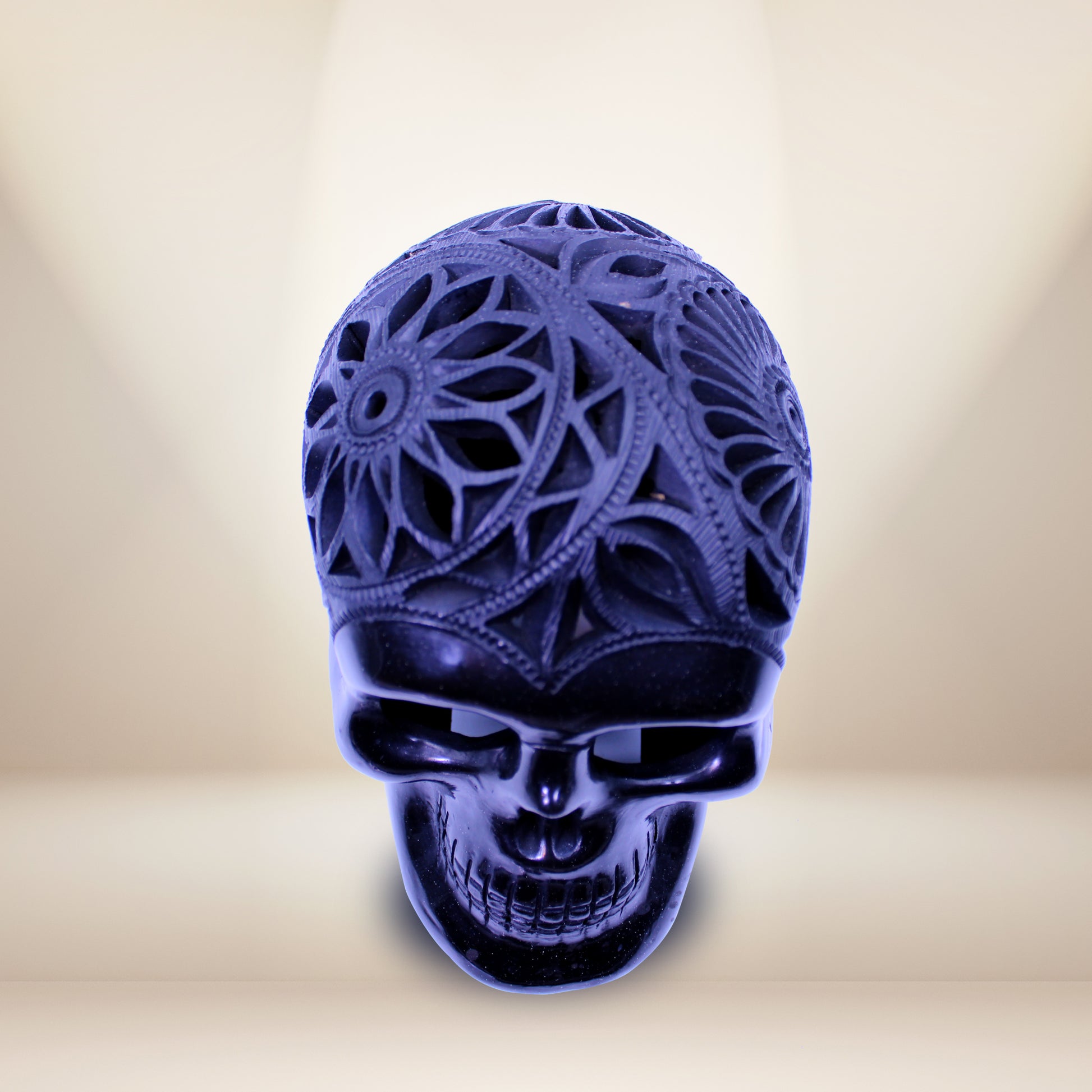 - Design: Traditional skull (calavera) with intricate hand-carved patterns
