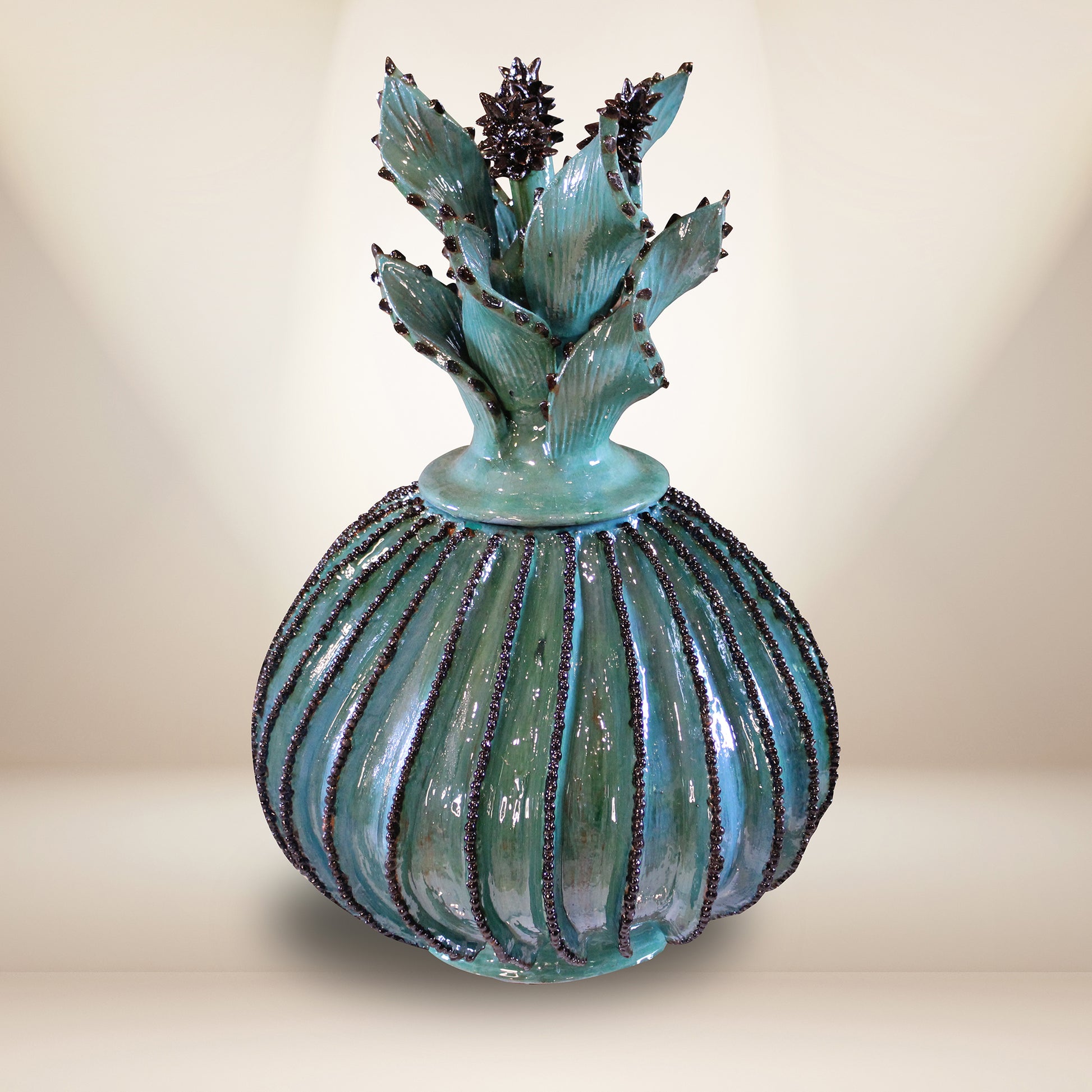 Elegant glazed clay piece handcrafted by Mexican artisans. Its glossy finish and unique design make it a special accent for any spa