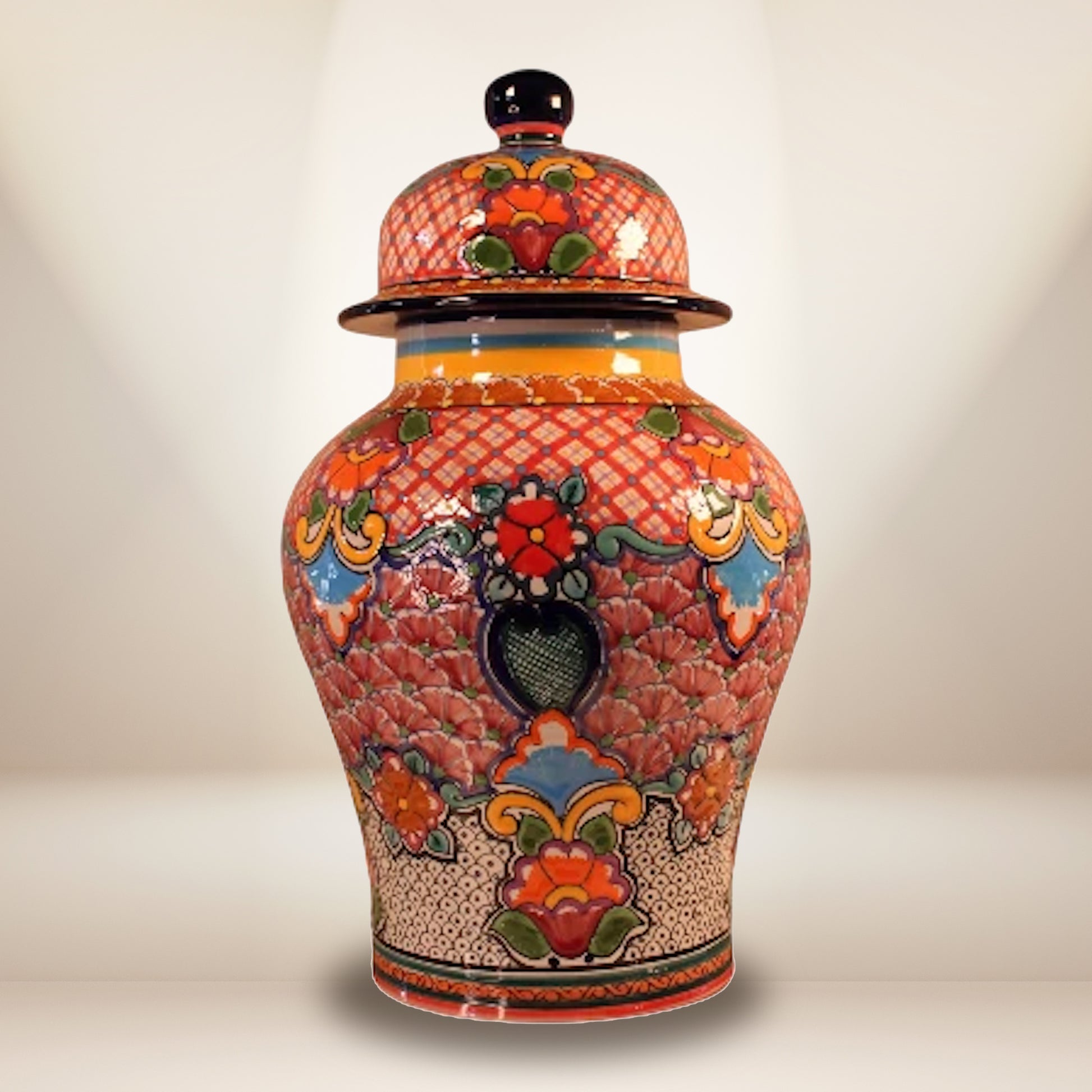 Hand-Painted Talavera Tibor Jar 16.5" - Authentic Mexican Pottery | Decorative Urn
